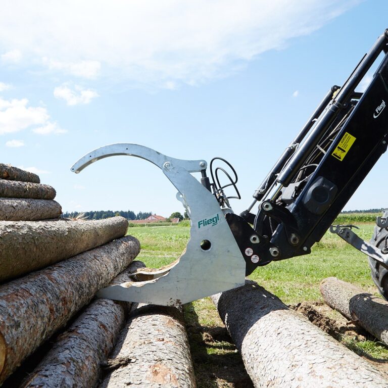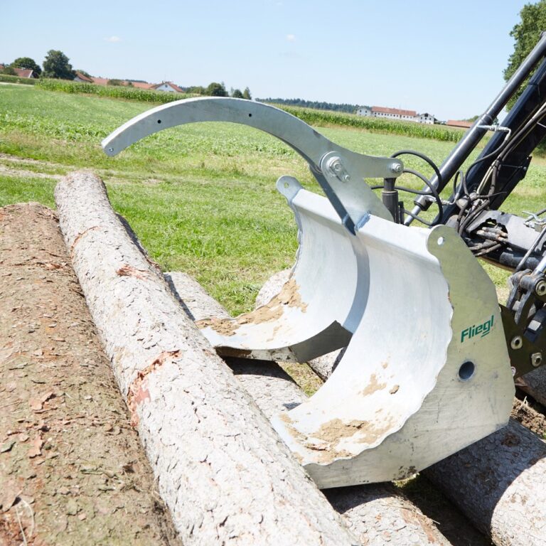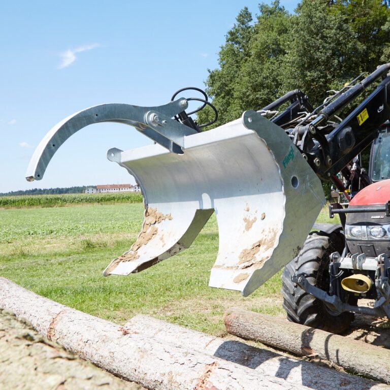 Durch die besondere Form und die geriffelten Seitenränder des Polderschilds können Baumstämme einfach und ohne Verrutschen transportiert werden.