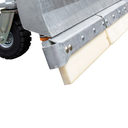 - Serienmäßig mit hochverschleißfesten Schürfleisten aus Polyurethan (Höhe 200 mm, Stärke 40 mm)