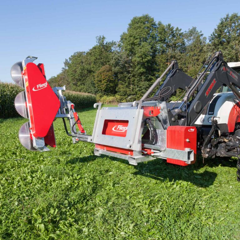 - Serienmäßig mit seitlichem Kontergewicht – keine einseitige Belastung der Schwinge des Trägerfahrzeugs und geringere Kippgefahr