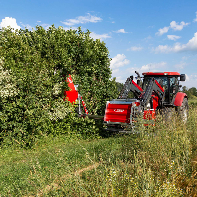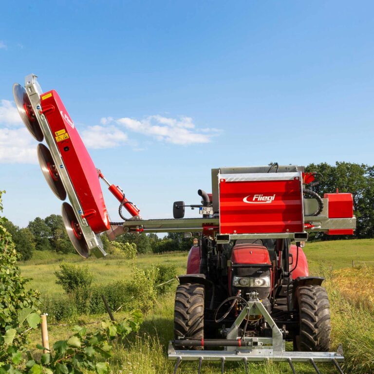 - Ausleger seitlich um 1200 mm ausschiebbar – ermöglicht Fahren am Straßenrand und Schneiden im Auslegerbereich