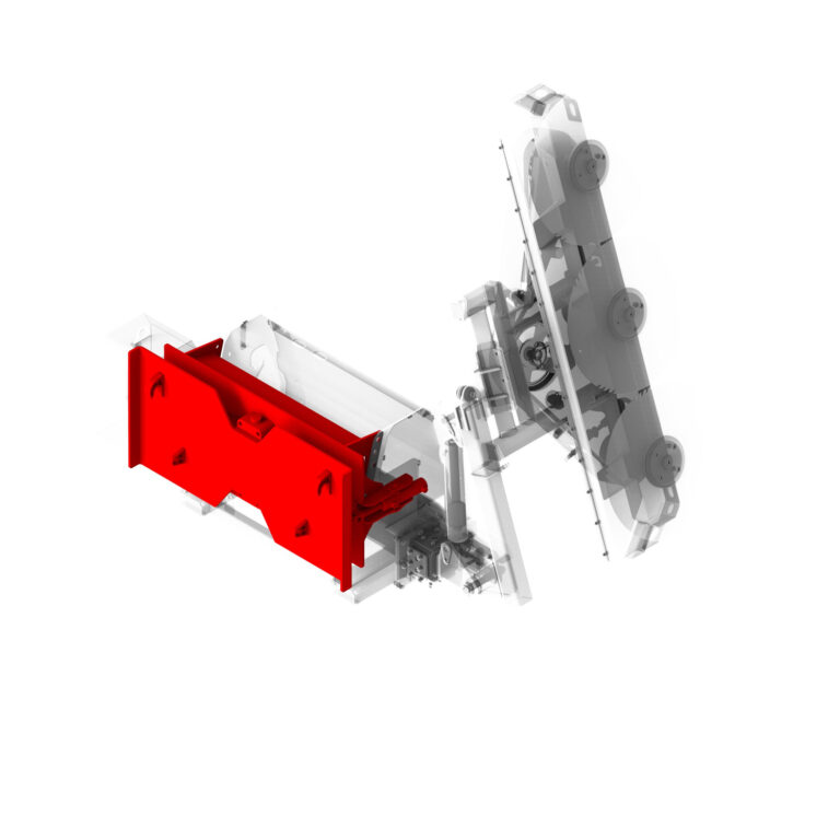 Die beidseitige Aufnahme macht es möglich, die Astsäge im Links- und Rechtsanbau zu verwenden. Über die schraubbare Aufnahmeplatte kann die Astsäge sowohl links als auch rechts montiert werden. Anschließend muss der Sägekopf um 180° geschwenkt werden.
